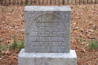| Breedlove | Mabell | Jan 31 1888 | May 23 1894 | d/o B.F. & N.F. |