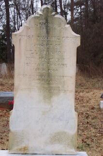 | Crow | Louisa Evaline | Aug 10 1831 | Feb 16 1900 | consort of William age 68y 6m 6d |