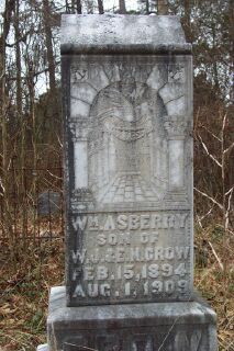 | Crow | Wm. Asberry | Feb 15 1894 | Aug 1 1909 | s/o W.J. & E.M. |