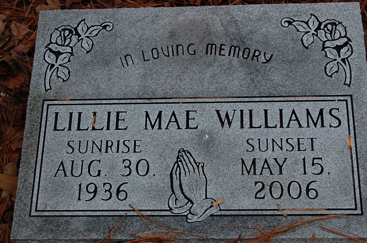 | Williams | Lillie Mae | Aug 30 1936 | May 15 2006 | |