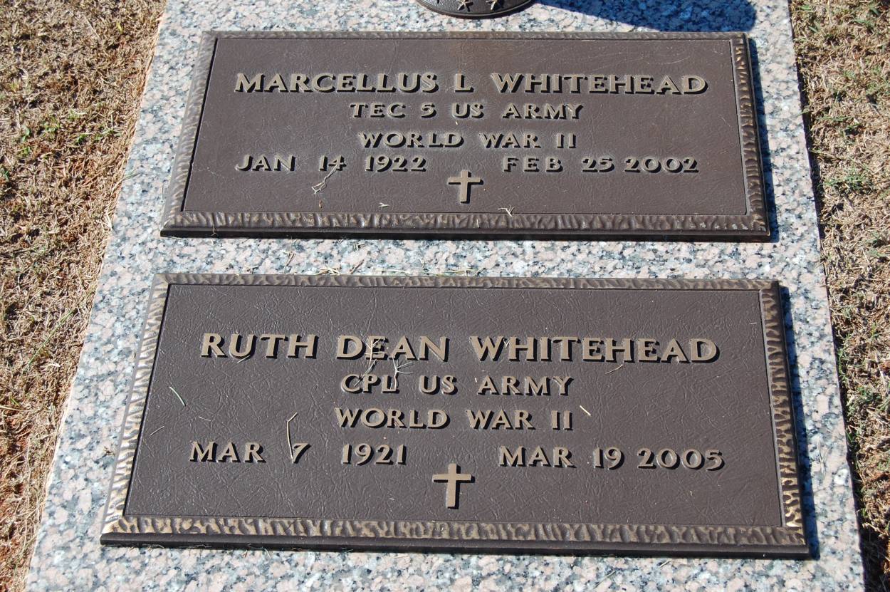 | Whitehead | Ruth Dean | Mar 7 1921 | Mar 19 2005 | Cpl US Army WWII , shared stone w/Marcellus |