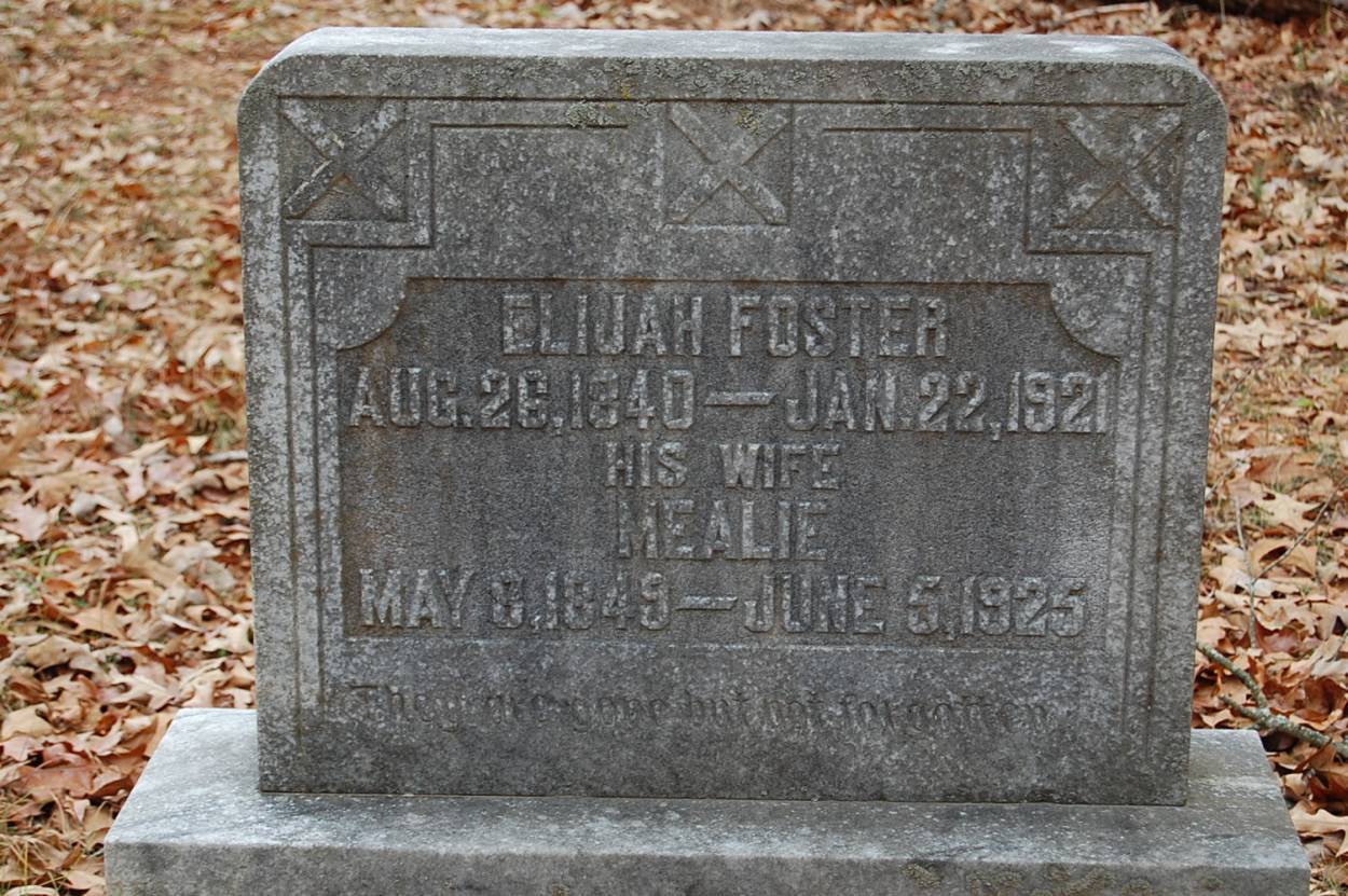 | Foster | Elijah | Aug 26 1840 | Jan 22 1921 | shared stone w/Mealie |