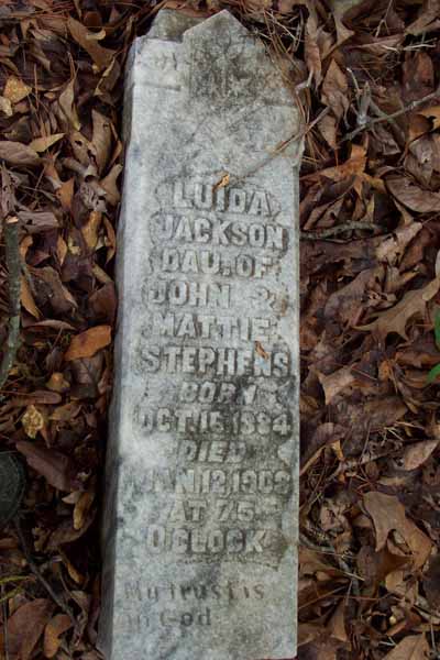 | Jackson | Luida | Oct 16 1884 | Jan 12 1908 | d/o John & Mattie Stephens |