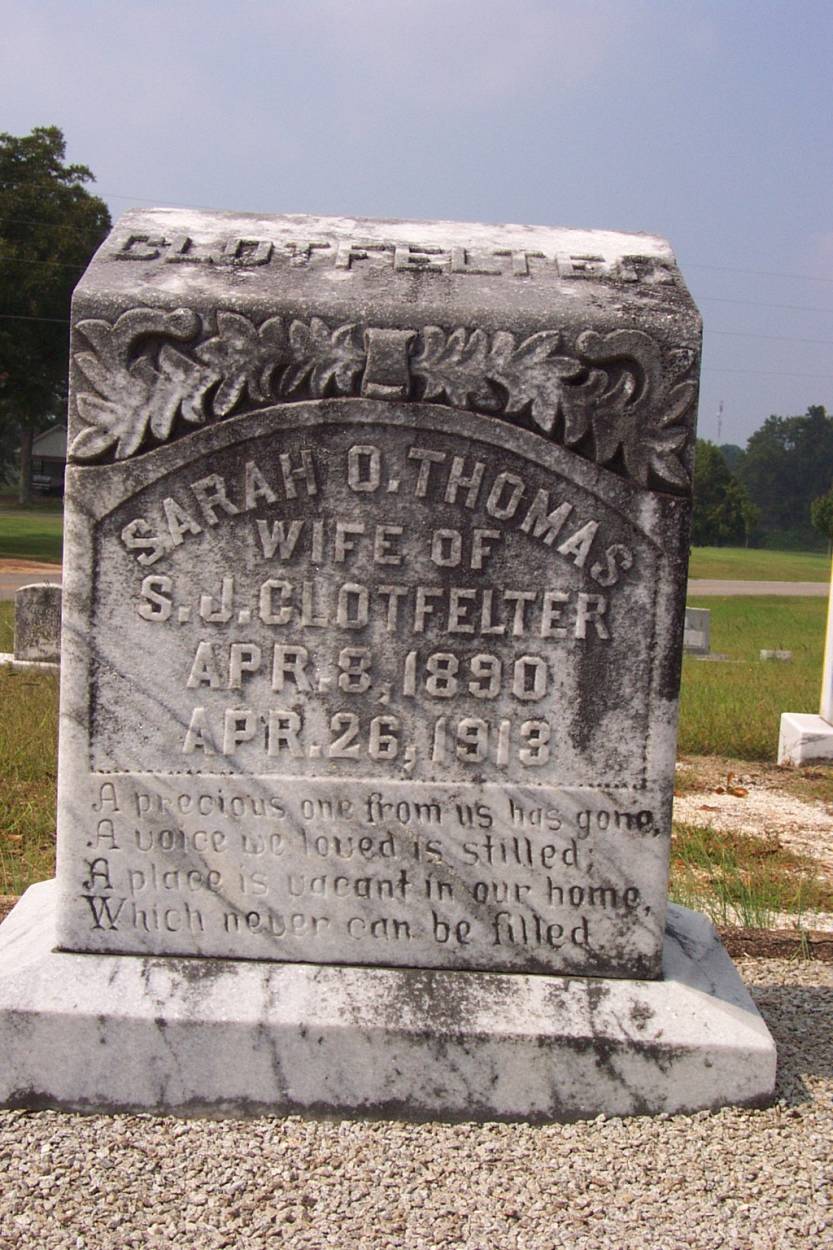 | Clotfelter | Sarah O. Thomas | Apr 8 1890 | Apr 26 1913 | w/o S.J. |
