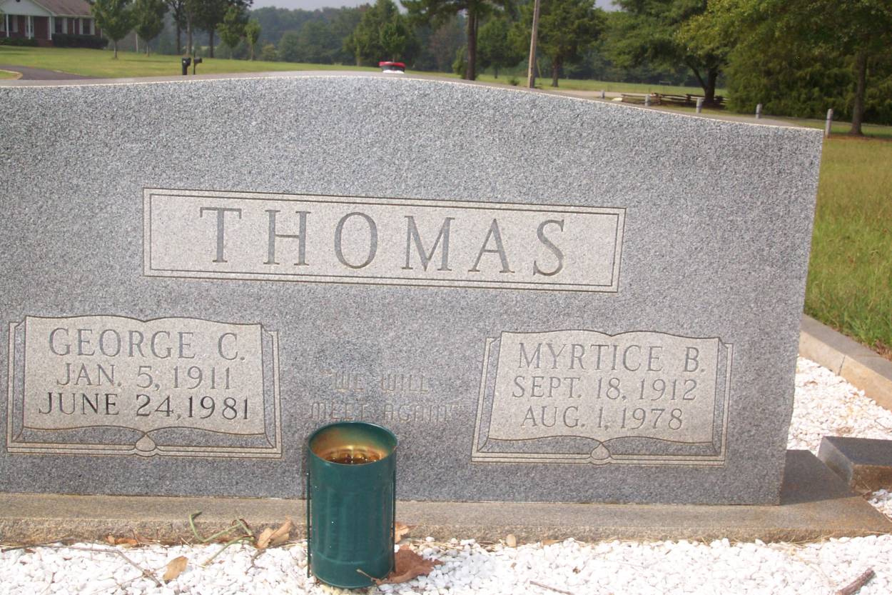 | Thomas | Myrtice B. | Sep 18 1912 | Aug 1 1978 | shared stone w/George C. |