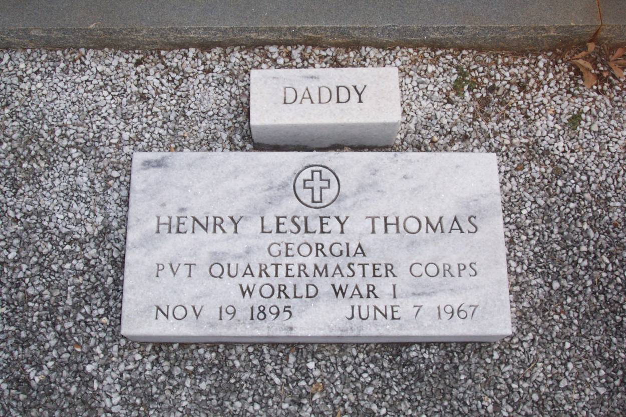 | Thomas | Henry Lesley | Nov 19 1895 | Jun 7 1967 | Ga Pvt Qtrmstr Corp WWI, shared stone w/Clyde S. |