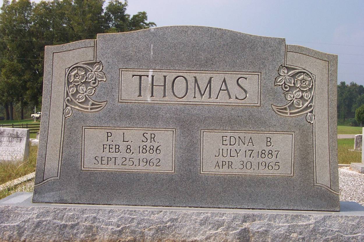 | Thomas | Edna B. | Jul 17 1887 | Apr 30 1965 | shared stone w/P.L. Sr. |