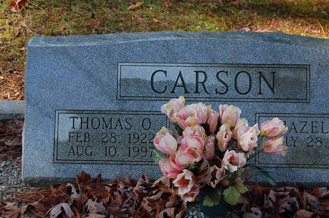 | Carson | Thomas O. | Feb 28 1922 | Aug 10 1997 | shared stone w/Hazel L. |