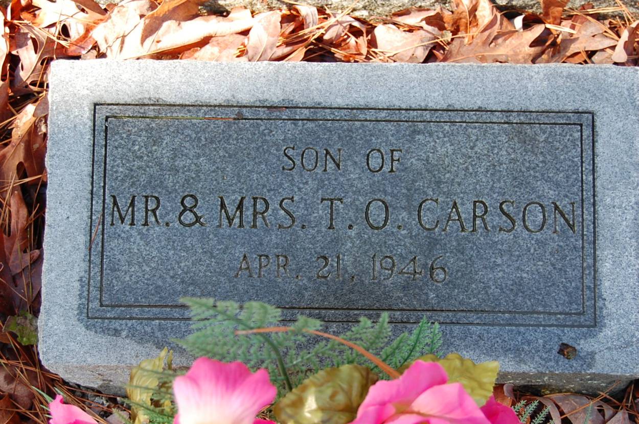 | Carson | Infant Son | Apr 21 1946 | Apr 21 1946 | s/o Mr. & Mrs. T.O. |