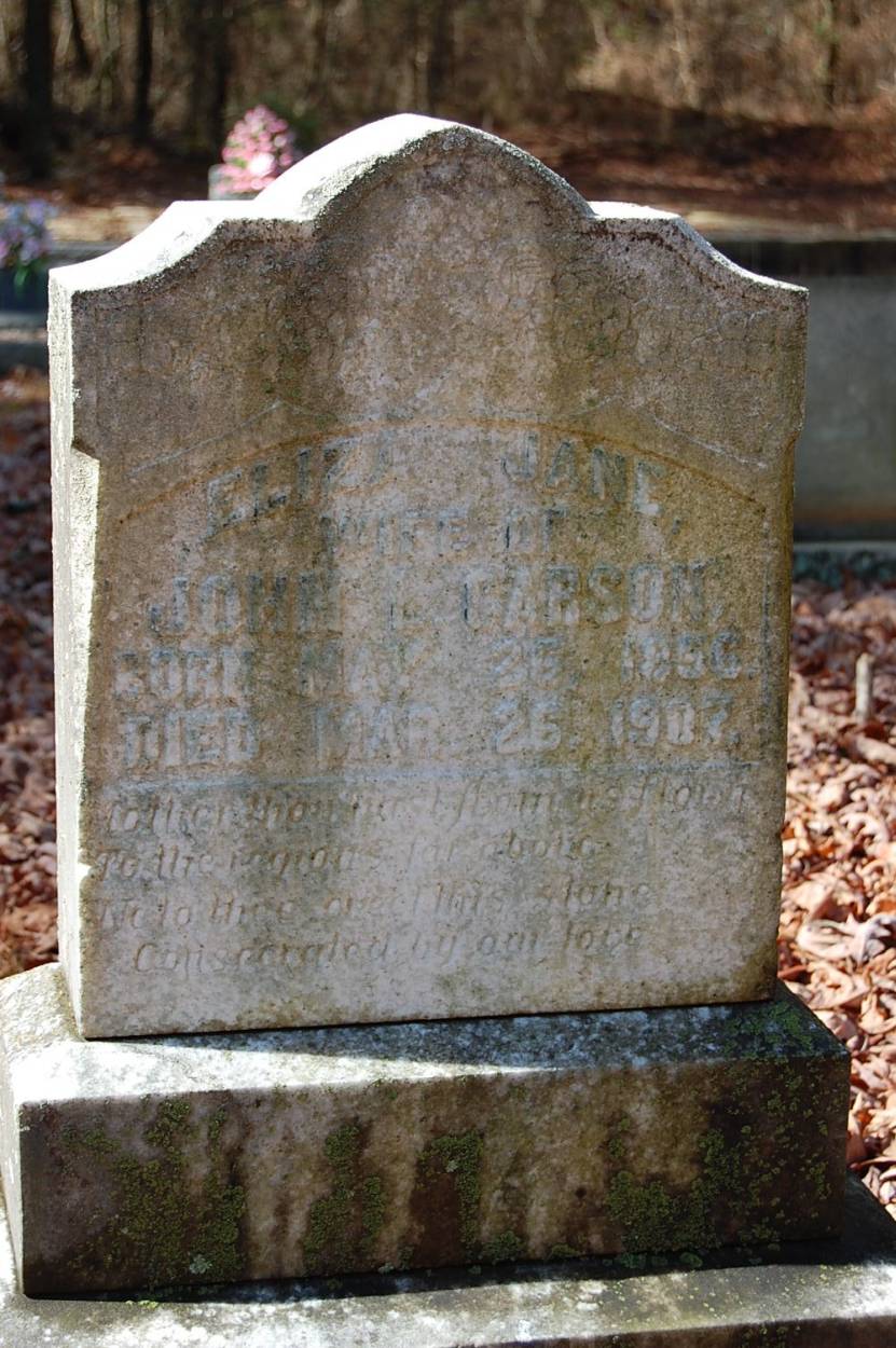 | Carson | Eliza Jane | May 26 1856 | Mar 26 1907 | w/o John L. |