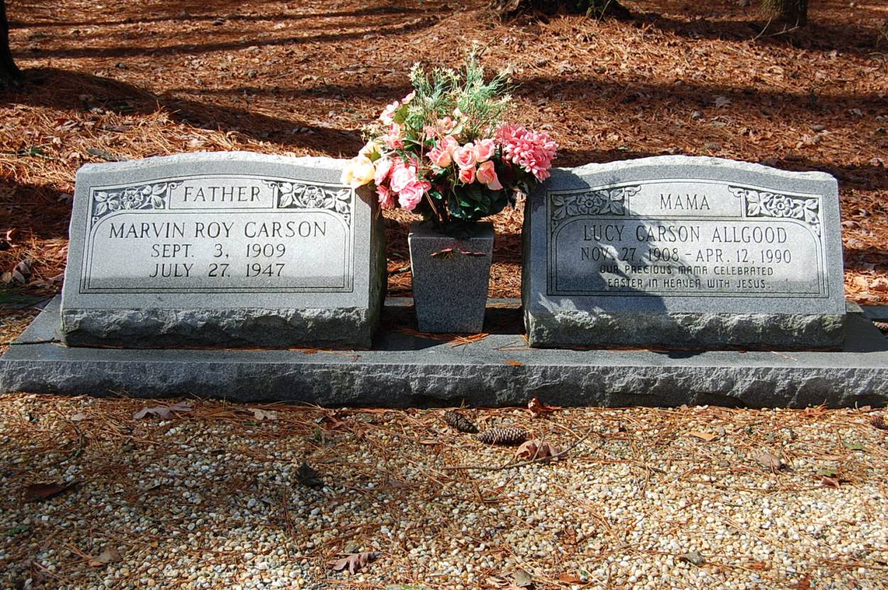 | Allgood | Lucy Carson | Nov 27 1908 | Apr 12 1990 | shared stone w/Marvin Roy Carson |