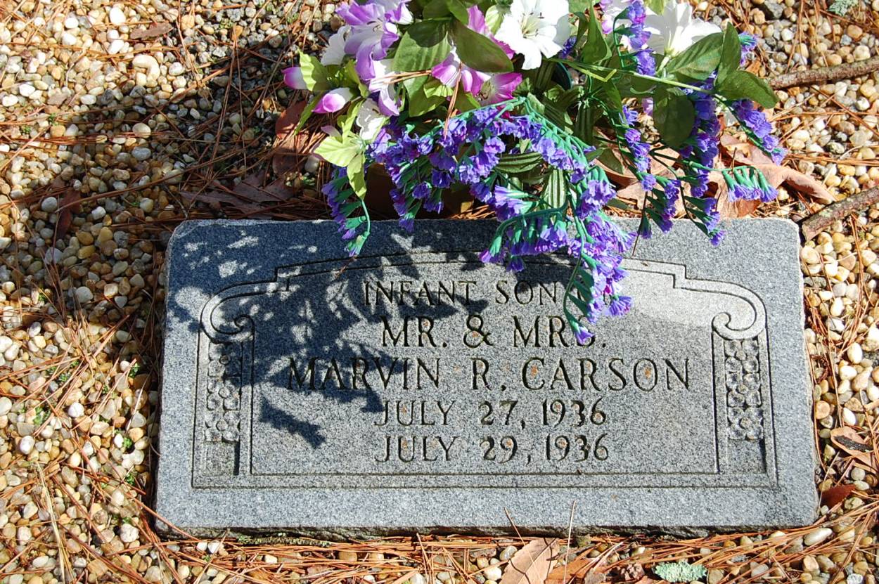 | Carson | Infant Son | Jul 27 1936 | Jul 29 1936 | s/o Mr. & Mrs. Marvin R. |