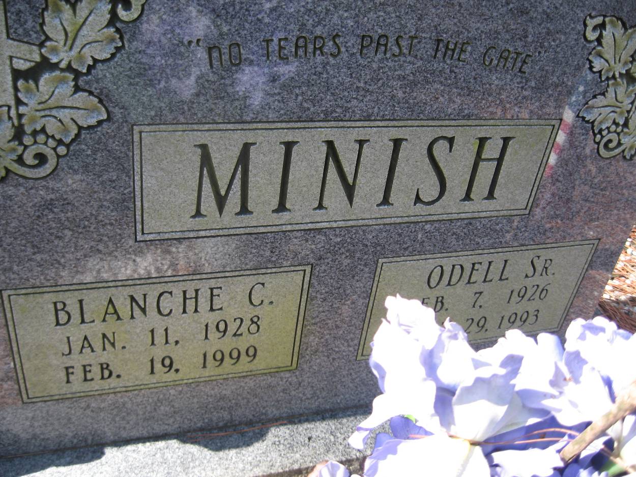 | Minish | Blanche C. | Jan 11 1928 | Feb 19 1999 | shared stone w/Odell Sr. |