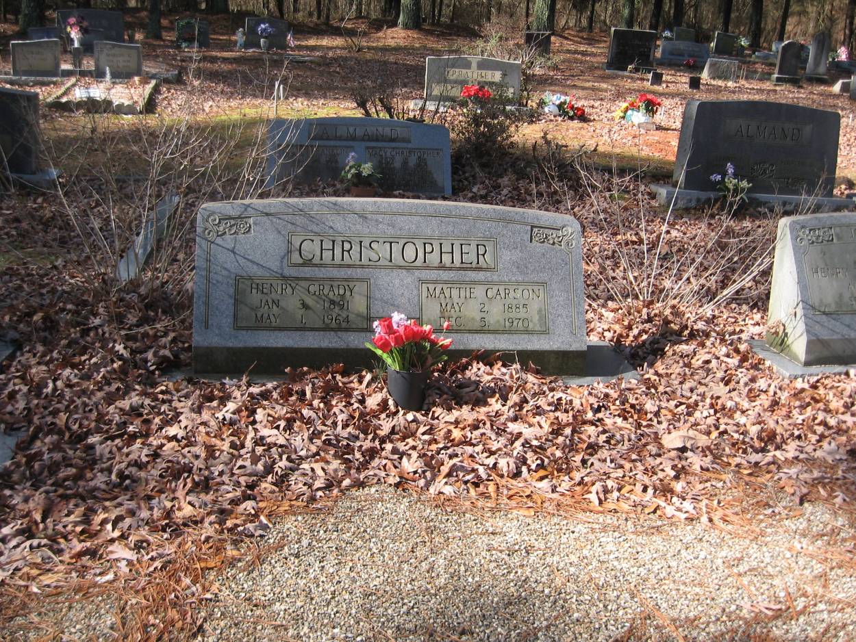 | Christopher | Henry Grady | Jan 3 1891 | May 1 1964 | shared stone w/Mattie C. |