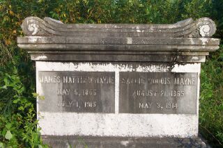 | Mayne | James Matthew | May 5 1855 | Jul 1 1915 | shared stone w/Sallie W. |