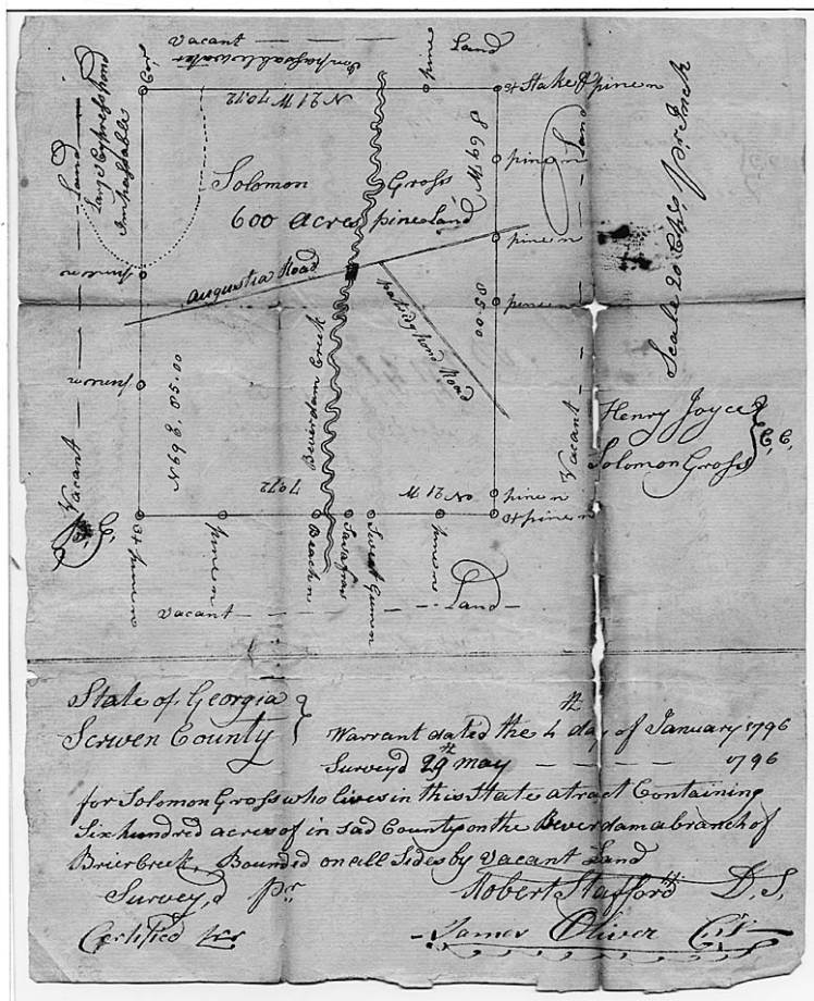 Screven County Georgia Family Biographies The following courtesy of Brenda Moulder. Solomon Gross Jr. it looks like he moved from North Carolina to Jasper, Co. and got 150 acres in Screven, Co. GA. in 1794 maybe in the land lottery to begin with, then in 1796 bought 600 acres. Then John Robert Gross in 1805 bought 350 acres. John Robert as far as I can find out died in an unknown battlefield during the Civil War. After he died his father Ellison Gross, Solomons son, raised his sons Gustavus Adolphus Gross, Reuben Presley, and Charles Monroe. Solomon Gross Family Deeds
