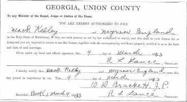 ![]() Marriage Certificate of Mack Kelley and Myrner England Mar. 4, 1933 |