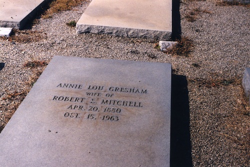 Annie Lou Gresham is the daughter of William Henderson Gresham and Lula V. (nee Coleman). Her husband Robert L. Mitchell (25 Jul 1877 – 31 May 1946) is also buried in this cemetery (I do not have a picture of his grave).