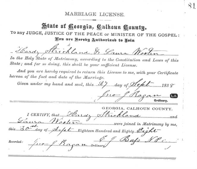 Hardy Strickland & Laura Wooten Marriage License