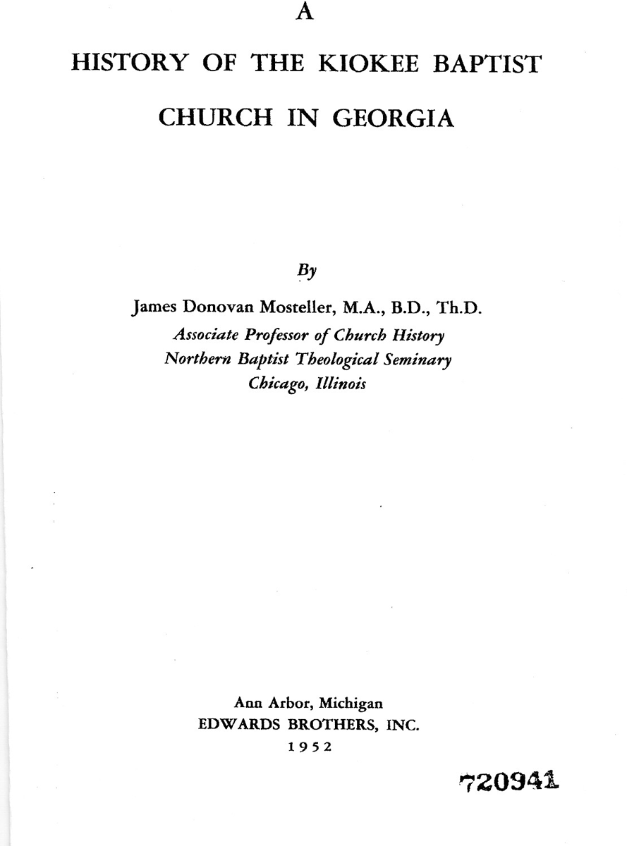 His 420 page doctorial dissertation was a "History of the Kiokee