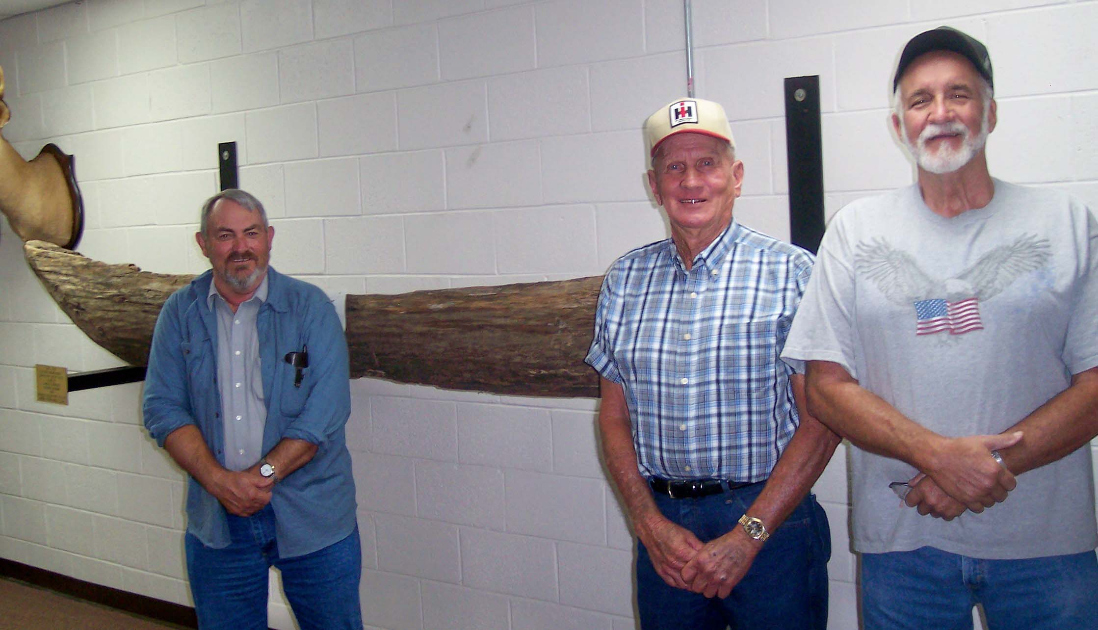 L-R: Mike Stokes, Jimmy Stokes, Cary Stokes with 17th century Indian canoe. |