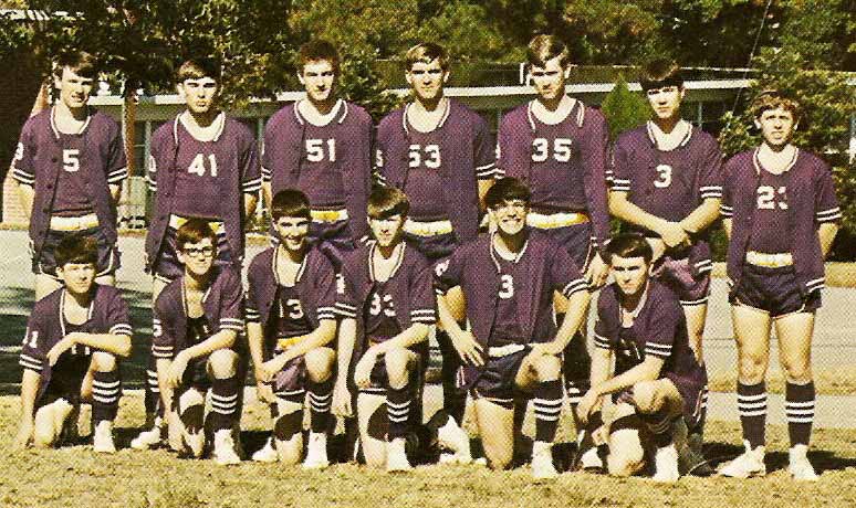 Crawford County 1969 State Championship Team. Kneeling, L-R: Johnny Pierson, Dicky Scarborough, Ed Hortman, Andy Lowrey, David Williams, Terry Rigdon. Standing, L-R: John Chuck Hawkins, Harry Moore, Al McGee, Robert Causey, Terry Hunt, Alan Williams, Bobby Sheets.