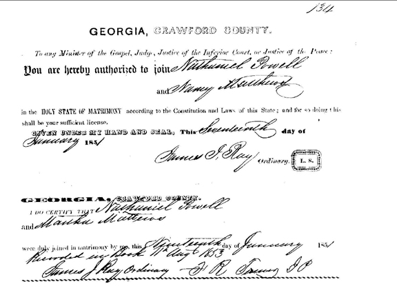 Powell, Nathaniel & Matthews, Martha (Submitted by Patsy Adams ←)