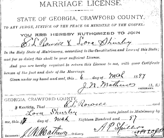 Rowell, Easton L. & Shurley, Lora (Submitted by Patsy Adams ←)