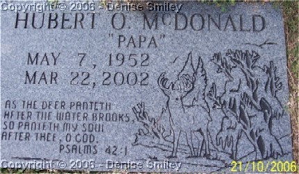 HUBERT O. MCDONALD 7 MAY 1952 - 22 MAR 2002