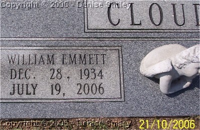 WILLIAM EMMETT CLOUD 28 DEC 1934 - 19 JUL 2006 HUSBAND OF HARRIET WILKINS CLOUD
