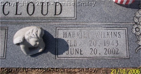HARRIET WILKINS CLOUD 20 FEB 1943 - 20 JUN 2002 WIFE OF WILLIAM EMMETT CLOUD