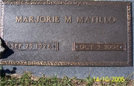 MARJORIE M. MATILLO 25 SEP 1926 - 3 OCT 2004