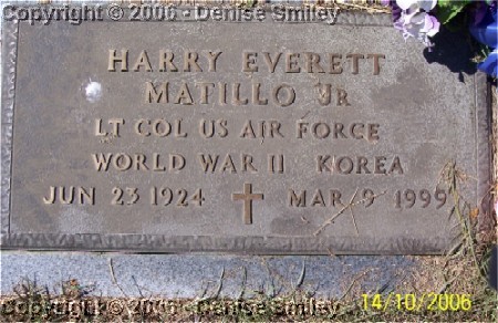 HARRY EVERETT MATILLO, JR. LT COL - US AIR FORCE WORLD WAR II - KOREA 23 JUN 1924 - 9 MAR 1999