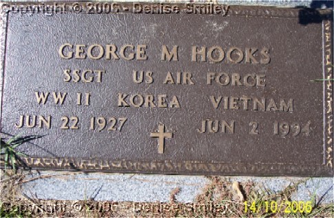 GEORGE M. HOOKS SSGT - US AIR FORCE WORLD WAR II - KOREA - VIETNAM 22 JUN 1927 - 2 JUN 1994