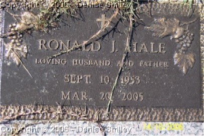 RONALD J. HALE 10 SEP 1953 - 20 MAR 2005