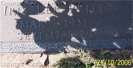 IRIS LEE BRITT 04 MAR 1932 - 17 SEP 1979