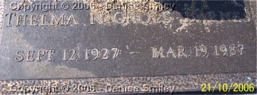THELMA NICHOLS BARNES 12 SEP 1927 - 19 MAR 1987