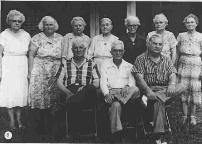 8. Surviving Youngblood Siblings. Seated, L-R: William, George, Ephraim; Standing, L-R: Jewell, Thelma, Callie, Rosa, Agnes, Vera, Mattie. Photo taken July 6, 1957. (L. L. Ketchum)