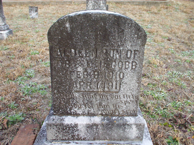ALDEEN COBB, Son of F. B and E. I. Cobb b. 09 Feb 1910 d. 01 April 1911 |