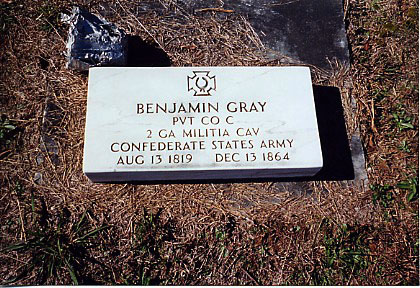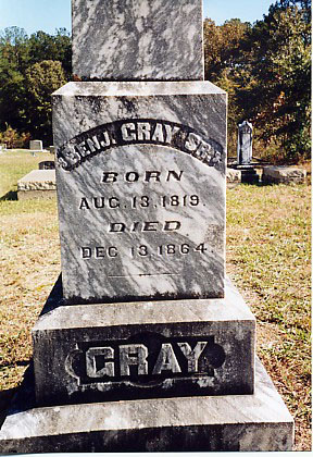 Benjamin J. Gray, Sr. b. 13 Aug 1819, Newberry District, SC d. 13 Dec 1864, Civil War