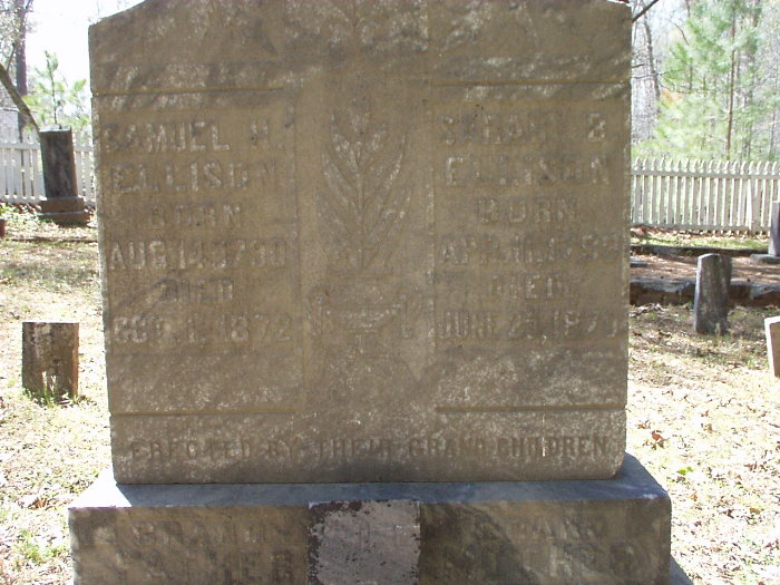 Samuel H. Ellison b. 14 Aug 1790 d. 01 Oct 1872 Sarah B. Ellison b. 11 Apr 1799 d. 25 Jun 1870 |