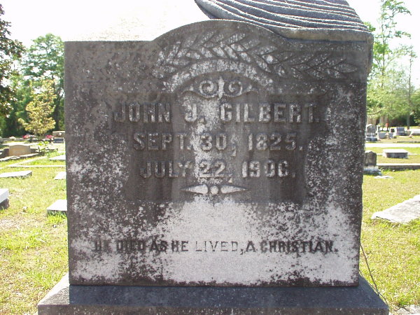 John J. Gilbert b. 30 Sept 1825 d. 22 July 1906 |