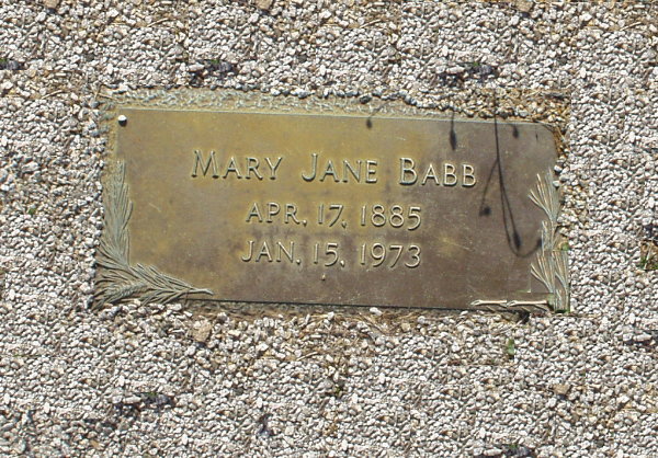 Mary Jane Babb b. 17 Apr 1885 d. 15 Jan 1973 |