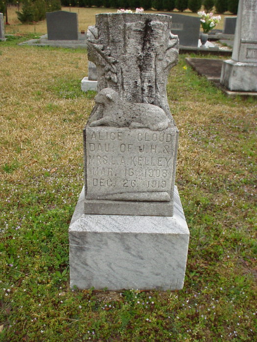 Alice Cloud, Dau of J. H. & Mrs. L. A. Kelley b. 16 Mar 1908 d. 26 Dec 1919