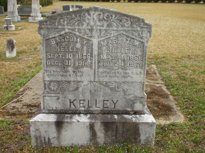 Bascom Y. Kelley b. 10 Sept 1866 d. 31 Dec 1914 Mary T. M. Kelley b. 04 May 1861 d. 24 July 1917