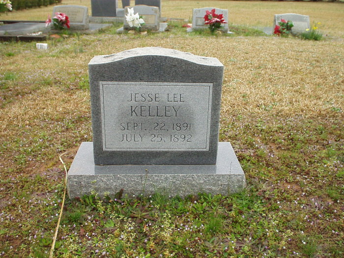 Jesse Lee Kelley b. 22 Sept 1891 d. 25 Jul 1892 |