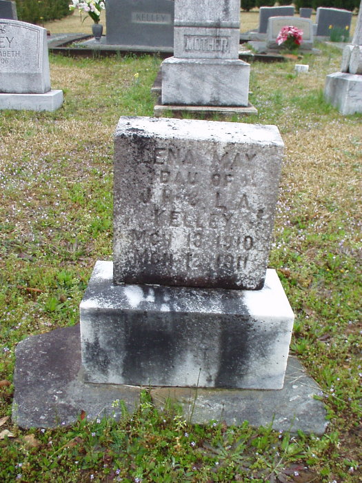 Lena May Kelley Dau of J. R. & L. A. b. 13 Mar 1910 d. 12 Mar 1911