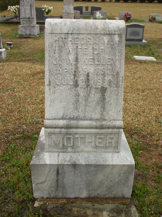 Theora M. Wife of J. W. Kelley b. 15 Apr 1853 d. 20 Jul 1893