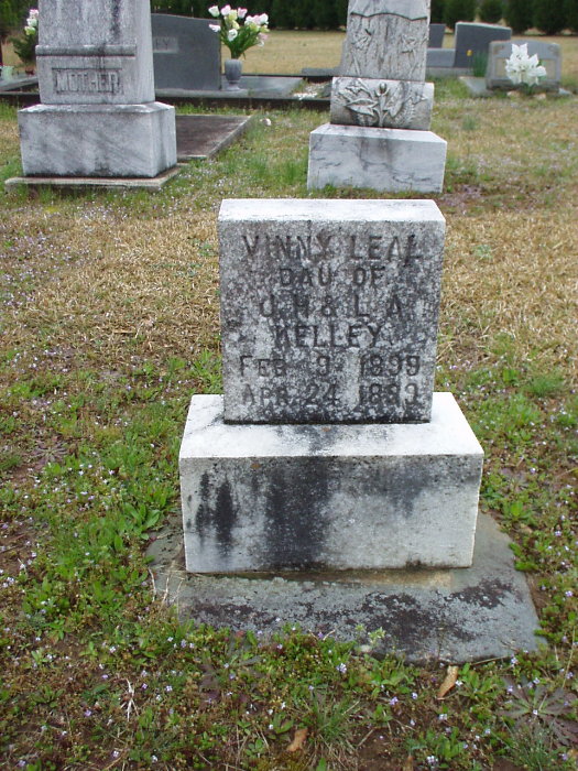 Vinney Leal dau of J. H. & L. A. Kelley b. 09 Feb 1899 d. 24 Apr 1899 |