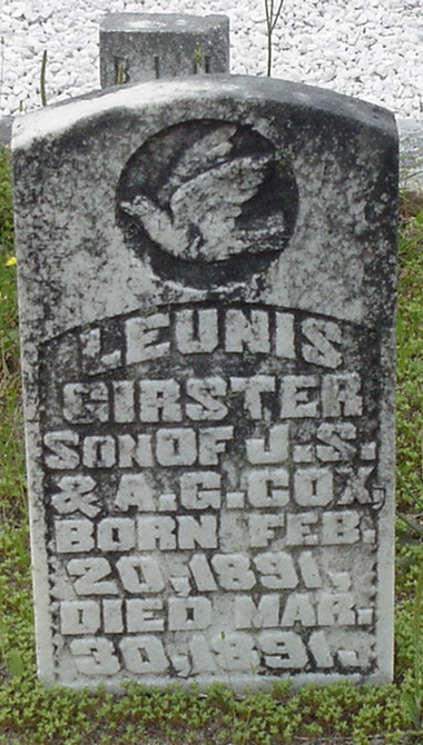 Leunis Girster Cox Son of J. S. & A. G. Cox b. 20 Feb 1891 d. 30 Mar 1891 |